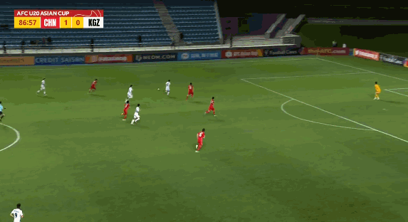第87分钟,U20国足错失反击机会后,吉尔吉斯斯坦队抓住机会小角度低射扳平比分